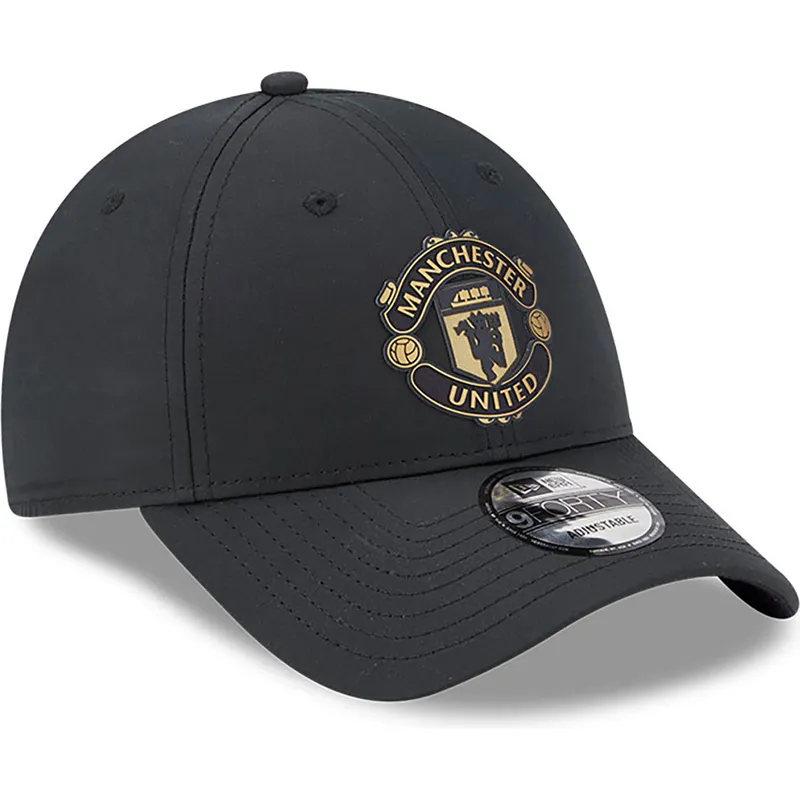 Czarna zakrzywiona regulowana czapka z logo w kolorze złotym 9FORTY Manchester United Football Club Premier League od New Era