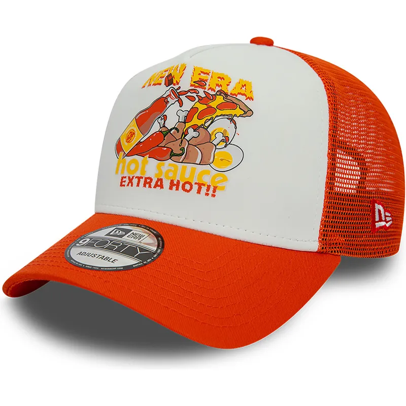 Biała i pomarańczowa czapka trucker Hot Sauce A Frame Food od New Era