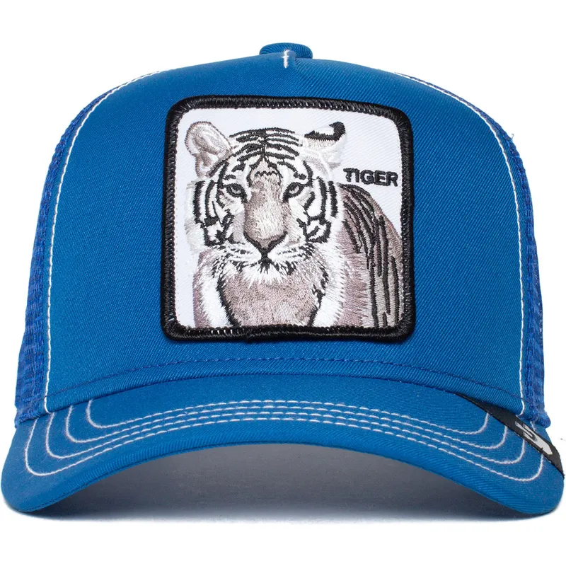 Niebieska czapka typu trucker dla chłopców Goorin Bros. Tiger Stripe Earner The Farm to idealny dodatek dla małych miłośników mody i miejskiego stylu. Dzięki uniseksowemu designowi czapka ta pasuje do każdego dziecka, które chce się wyróżniać odrobiną oryginalności. Zapięcie na zatrzask zapewnia idealne i wygodne dopasowanie do każdego rozmiaru głowy, a nadruk tygrysa nadaje mu dziki i zabawny charakter.