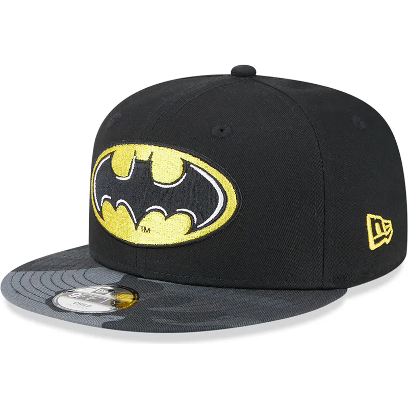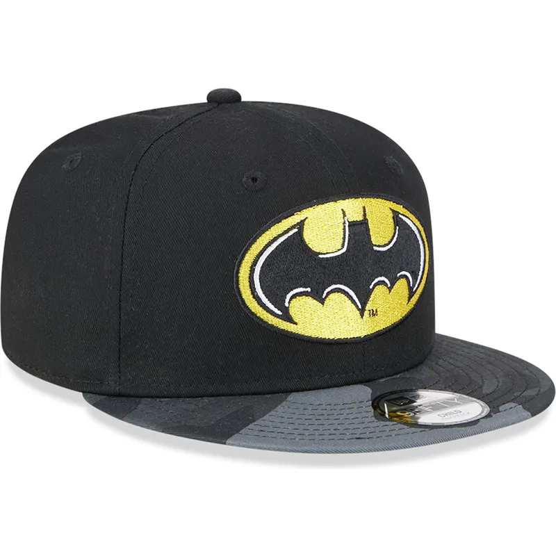Chłopięca płaska czapka z daszkiem 9FIFTY New Era Batman DC Comics w kolorze czarnym i w kamuflażu to idealne uzupełnienie dla małych fanów superbohatera. Ta czapka unisex wyróżnia się nowoczesnym i młodzieńczym stylem, idealna na każdą nieformalną okazję. Zapięcie na zatrzask umożliwia łatwe dopasowanie go do wygodnego i bezpiecznego dopasowania, dzięki czemu pozostaje na swoim miejscu przez cały dzień.