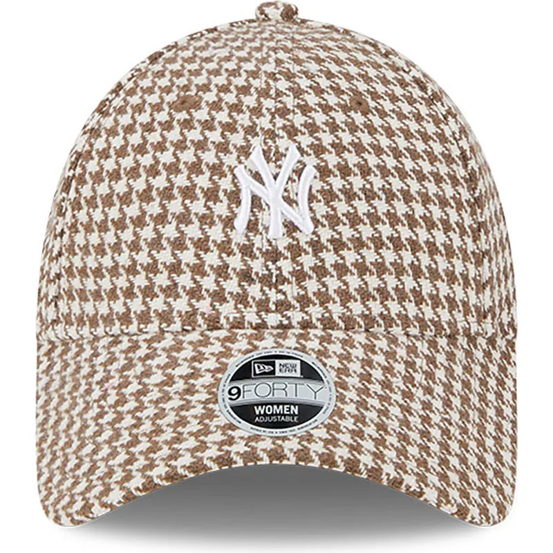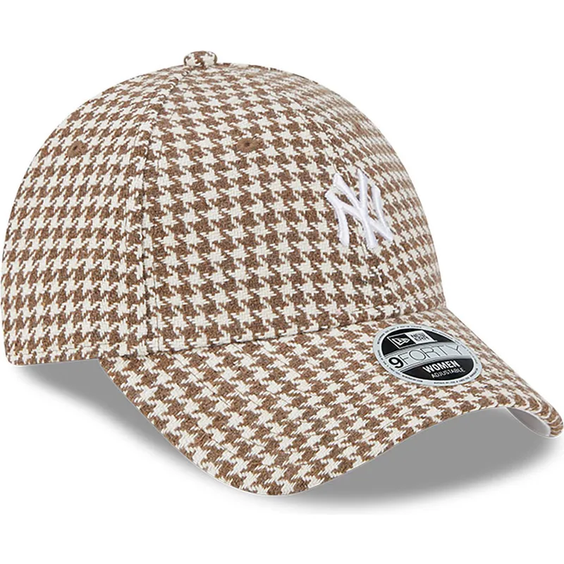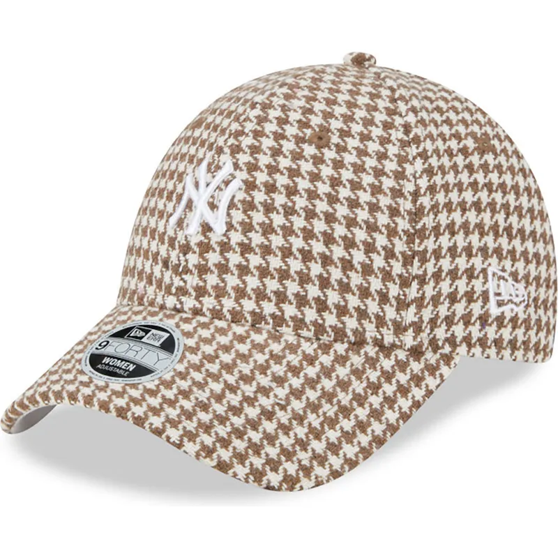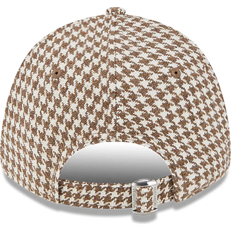 Regulowana brązowo-biała, zakrzywiona czapka damska New Era New York Yankees MLB 9FORTY Houndstooth to elegancki i wyrafinowany element, który doskonale łączy się z każdym codziennym lub sportowym strojem. Czapka renomowanej marki New Era ma ekskluzywny design dla kobiet kochających baseball i miejski styl.