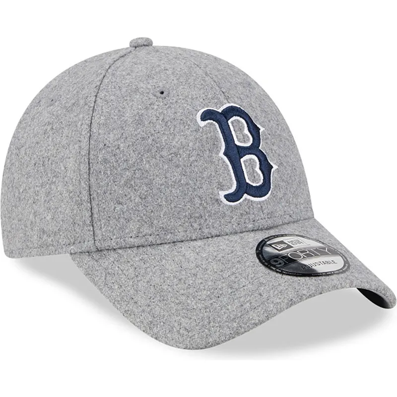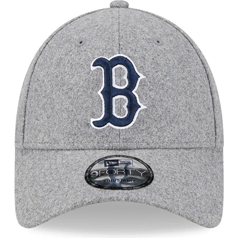 Szara zakrzywiona czapka z regulacją i niebieskim logo 9FORTY Essential Melton Wool Boston Red Sox MLB od New Era