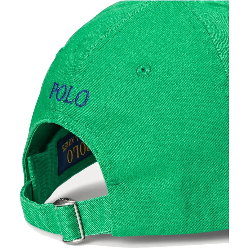 Zielona, regulowana czapka z zakrzywionym daszkiem z niebieskim logo Cotton Chino Classic Sport od Polo Ralph Lauren
