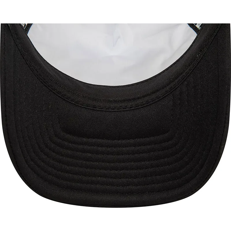 Czarno-biała czapka typu trucker Looney Tunes Królik Bugs i jego przyjaciele A Frame marki New Era to dodatek, który łączy w sobie styl i zabawę. Czapka ta, wykonana z wysokiej jakości materiałów, ma klasyczny krój typu trucker i ma siateczkowe panele z tyłu zapewniające dodatkową wentylację. Kultowa postać Królika Bugsa i jego przyjaciół ze Looney Tunes nadaje mu zabawny charakter retro, który z pewnością przyciągnie uwagę.
