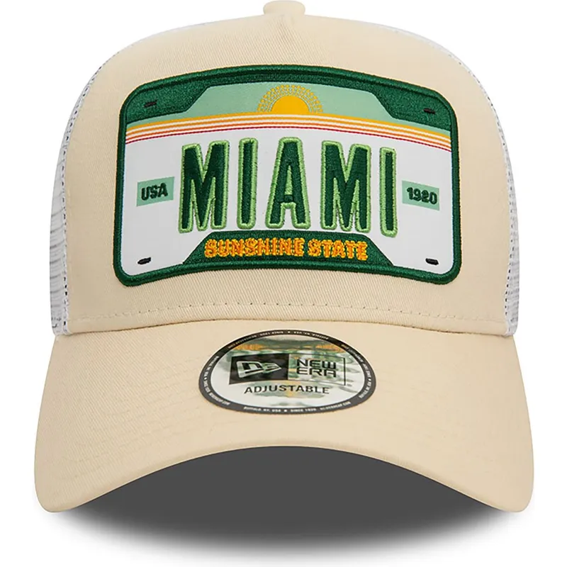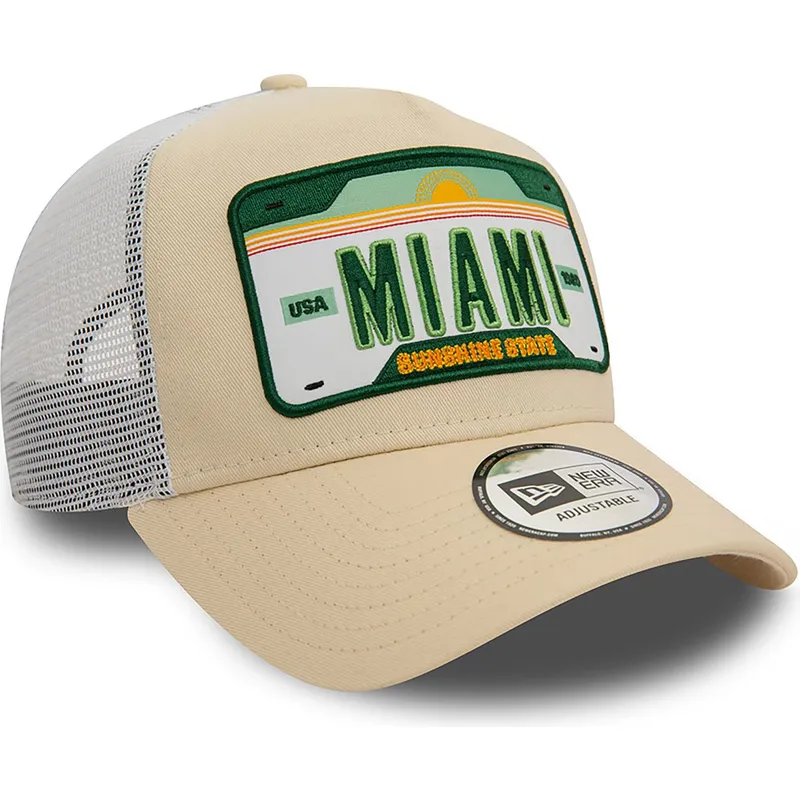 Beżowo-biała czapka trucker A Frame License Plate z Miami Ciudades y Playas od New Era