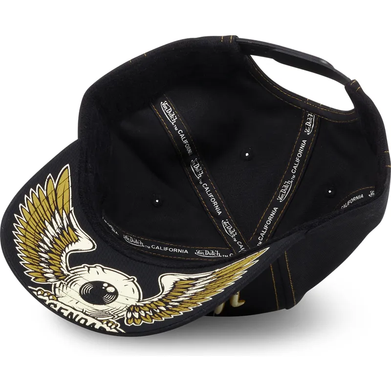 Czarna, zakrzywiona czapka typu snapback Von Dutch ROCK02 to niezbędny dodatek dla każdego miłośnika mody miejskiej. Jego unisex design sprawia, że jest to wszechstronna i praktyczna opcja dla mężczyzn i kobiet poszukujących nowoczesnego i aktualnego dodatku. Zapięcie typu snapback gwarantuje idealne i wygodne dopasowanie, dostosowując się do wzrostu każdej osoby.
