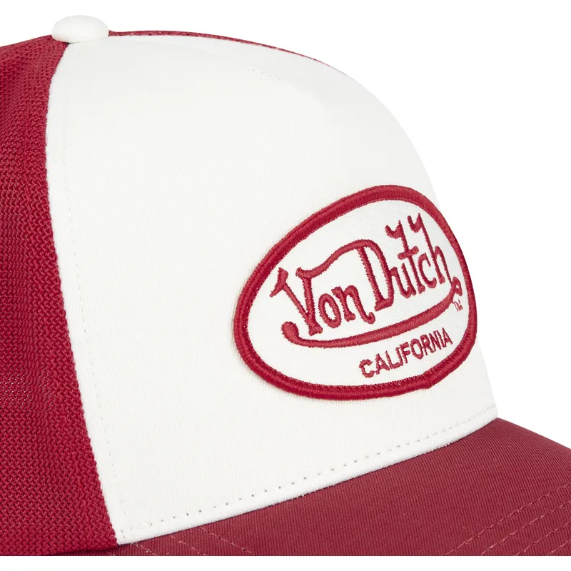 Wykonana z wysokiej jakości materiałów czapka typu trucker doskonale łączy biel i czerwień, tworząc uderzający i atrakcyjny kontrast. Na przednim panelu znajduje się kultowe logo Von Dutch wyhaftowane w kontrastujących odcieniach, co dodaje odzieży oryginalności i stylu. Dodatkowo tylne panele siatkowe umożliwiają odpowiednią wentylację, idealną na najgorętsze dni.