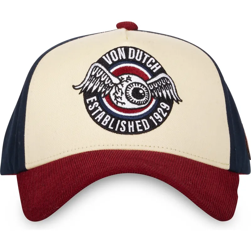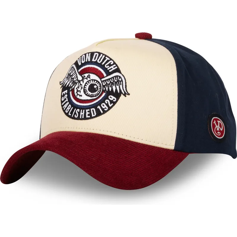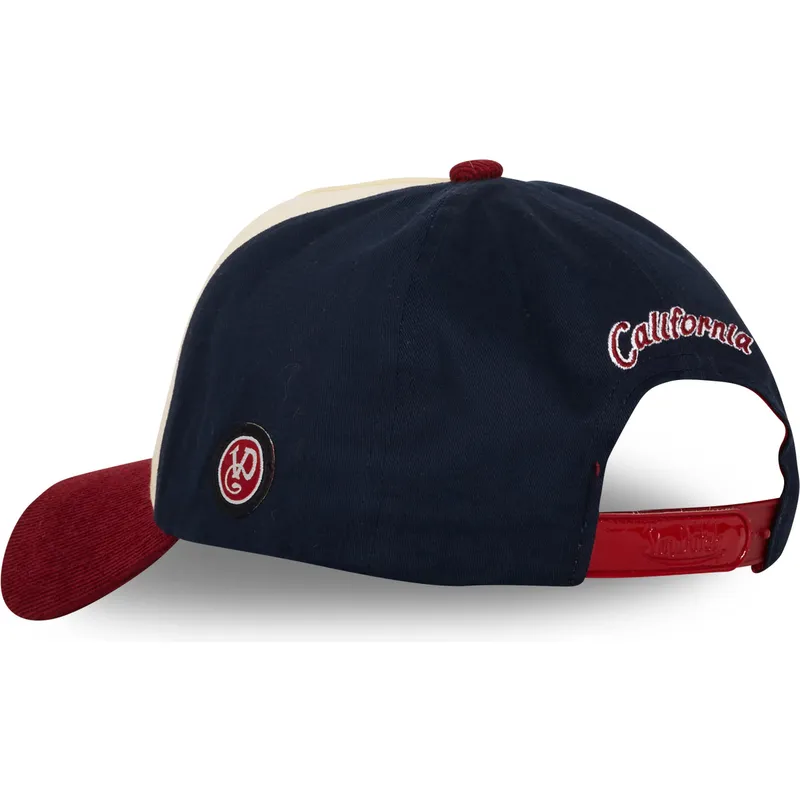 Dzięki zakrzywionej beżowo-niebieskiej i czerwonej czapce typu snapback VINT02 firmy Von Dutch Munbatala stworzyła niezbędny dodatek dla każdego dorosłego, który szuka odrobiny oryginalności w swoim stroju. Ta czapka unisex wyróżnia się połączeniem beżowych, niebieskich i czerwonych kolorów, które nadają jej nowoczesny i świeży wygląd. Zapięcie typu snapback zapewnia idealne dopasowanie do każdej głowy, a jej kształt w odróżnieniu od innych czapek sprawia, że idealnie sprawdzi się na każdą okazję.
