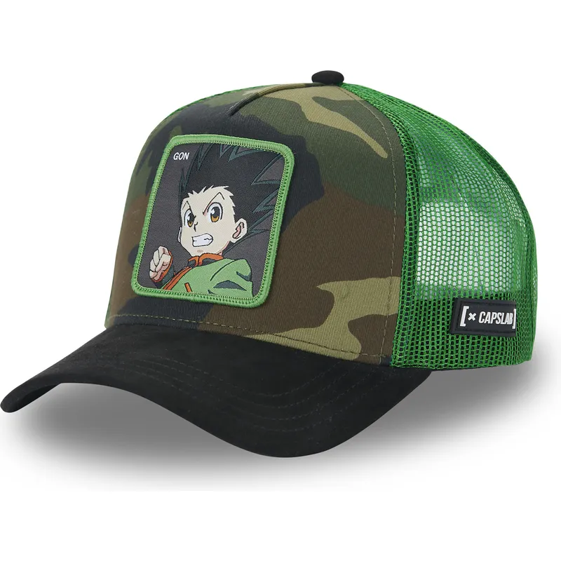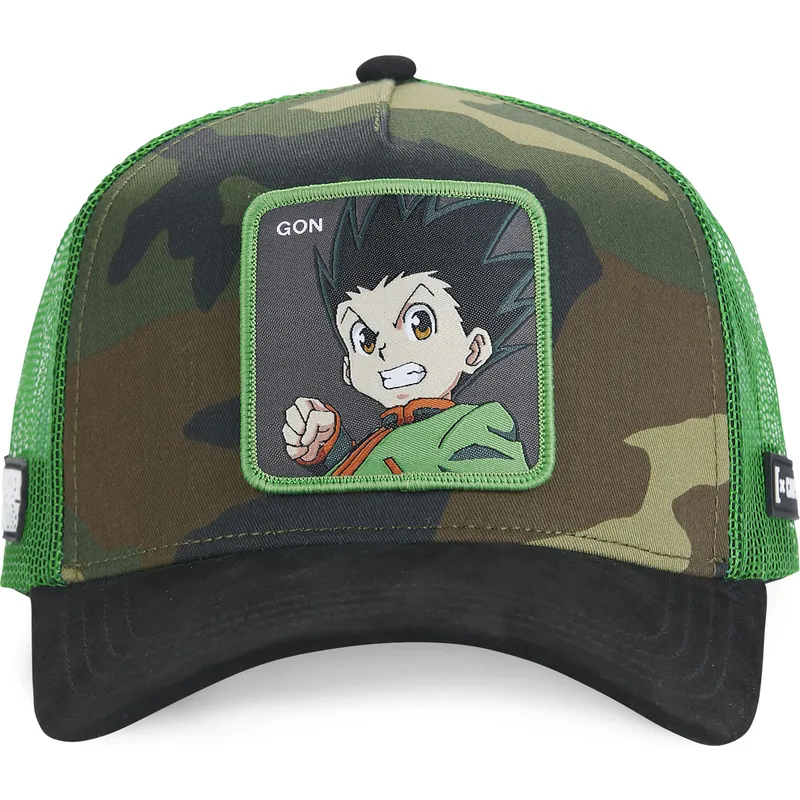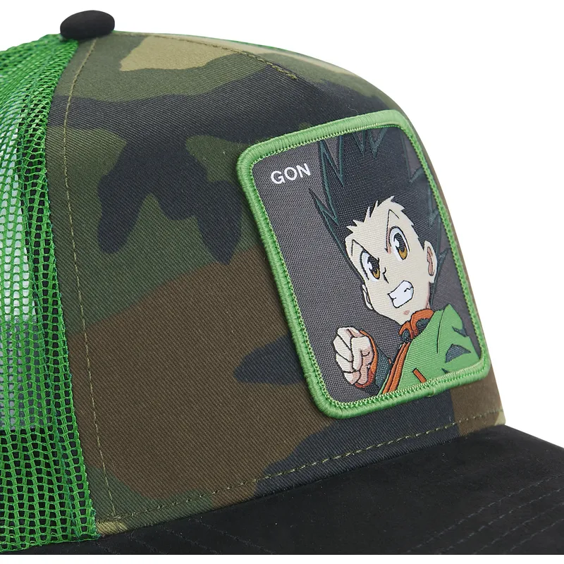 Czapka z daszkiem Gon Freecss HU3 Hunter x Hunter w kamuflażu i czarnej czapce typu trucker firmy Capslab to idealny dodatek dla fanów tej popularnej serii anime. Dzięki projektowi inspirowanemu postacią Gon Freecss czapka ta łączy kamuflaż z czernią w wyjątkowej i efektownej estetyce. Marka Munbatala stworzyła tę czapkę o klasycznym kształcie truckera, która zapewnia wygodę i styl każdemu, kto ją nosi.