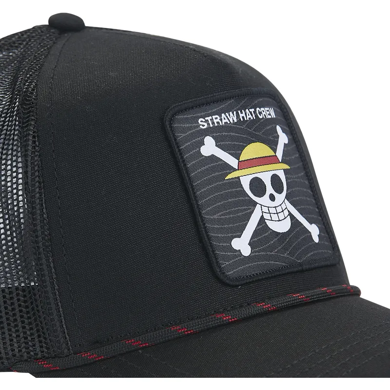 Czarna czapka typu trucker Straw Hat Pirates OP4 marki Capslab to prawdziwy skarb dla miłośników najsłynniejszej na świecie serii anime i mangi. Wykonana z wysokiej jakości materiałów czapka gwarantuje trwałość i wygodę podczas noszenia. Krój typu trucker nadaje mu nowoczesny i swobodny charakter, idealny do połączenia z każdym miejskim lub sportowym wyglądem.
