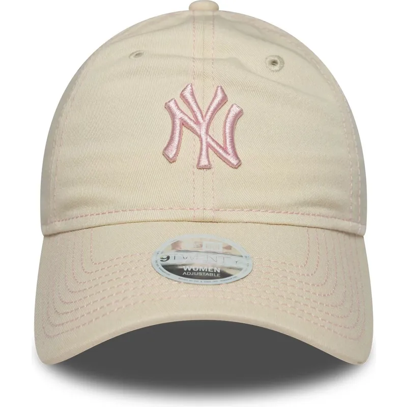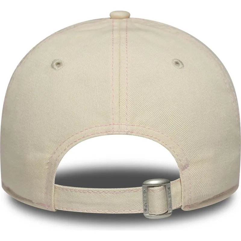 Czapka damska New Era w kolorze beżowym z zakrzywionym daszkiem 9TWENTY z kontrastowym przeszyciem i różowym logo New York Yankees MLB, regulowana, to obowiązkowy element garderoby dla fanów drużyny, którzy chcą połączyć styl i wygodę. Czapka ta wyróżnia się klasycznym wzornictwem i uniwersalnością, idealnie nadaje się do noszenia na co dzień lub do kibicowania drużynie New York Yankees przy każdej okazji. Wyprodukowany przez New Era, markę znaną na całym świecie z jakości i tradycji w dziedzinie czapek sportowych, model 9TWENTY zapewnia wygodne dopasowanie dzięki regulowanemu paskowi, który umożliwia idealne dopasowanie do różnych rozmiarów głowy.