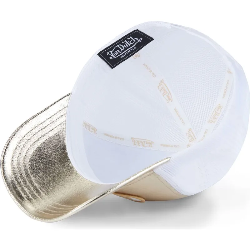 Złota czapka Von Dutch REG G typu trucker to must-have dla tych, którzy szukają połączenia stylu i funkcjonalności w jednym dodatku. Ta czapka, zaprojektowana dla dorosłych, wyróżnia się unisexowym designem, który pozwala każdemu nosić ją z pełnym komfortem i pewnością siebie. Charakterystyczny dla tego modelu fason trucker zapewnia optymalną wentylację dzięki siateczkowemu tyłowi, co czyni ją idealnym wyborem na słoneczne dni lub jako uzupełnienie casualowej stylizacji świeżym i nowoczesnym akcentem. Von Dutch, znana marka w świecie mody miejskiej, osiągnęła idealną równowagę między tradycją a trendem, dzięki czemu każdy detal jest wyrazisty i dopracowany.