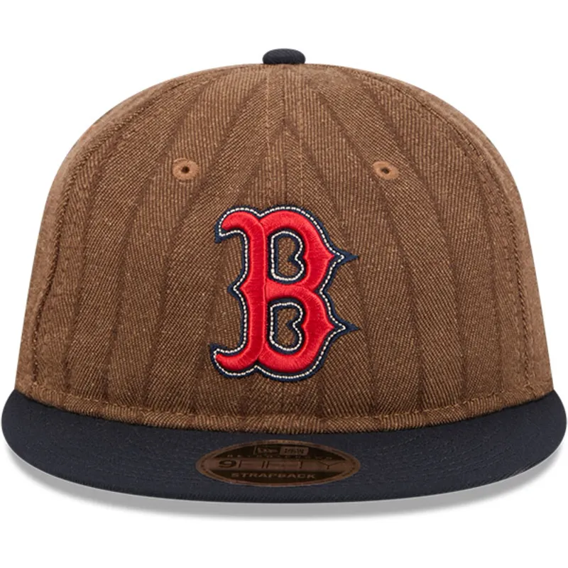 Regulowana brązowo-granatowa czapka z daszkiem 9FIFTY Retro Crown Wool Pinstripe Boston Red Sox MLB marki New Era