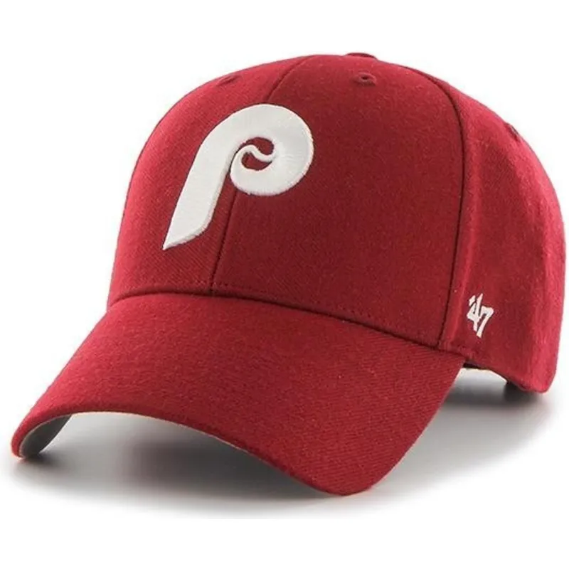 Czerwona czapka z daszkiem regulowana z klasycznym logo Philadelphia Phillies MLB MVP Cooperstown marki 47 Brand