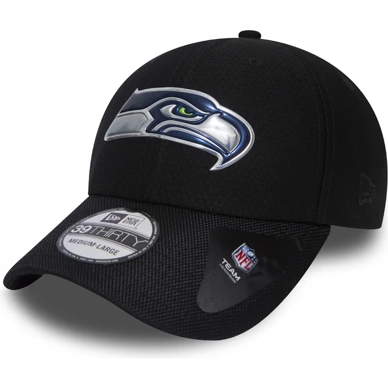 Czarna zakrzywiona czapka 39THIRTY Black Coll Seattle Seahawks NFL od New Era