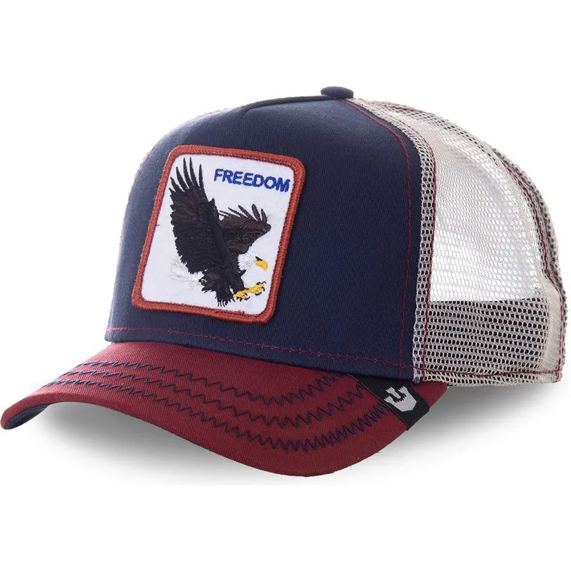 Goorin Bros. Let It Ring Navy Eagle Trucker Hat od Goorin Bros. jest po prostu oszałamiający. Haftowana naszywka majestatycznego orła w locie to prawdziwe dzieło sztuki. Połączenie granatowego, bordowego i białego koloru jest eleganckie i dyskretne, dzięki czemu ta czapka jest idealna na każdą okazję. Jakość haftu jest nienaganna, dzięki czemu czapka posłuży przez długi czas.