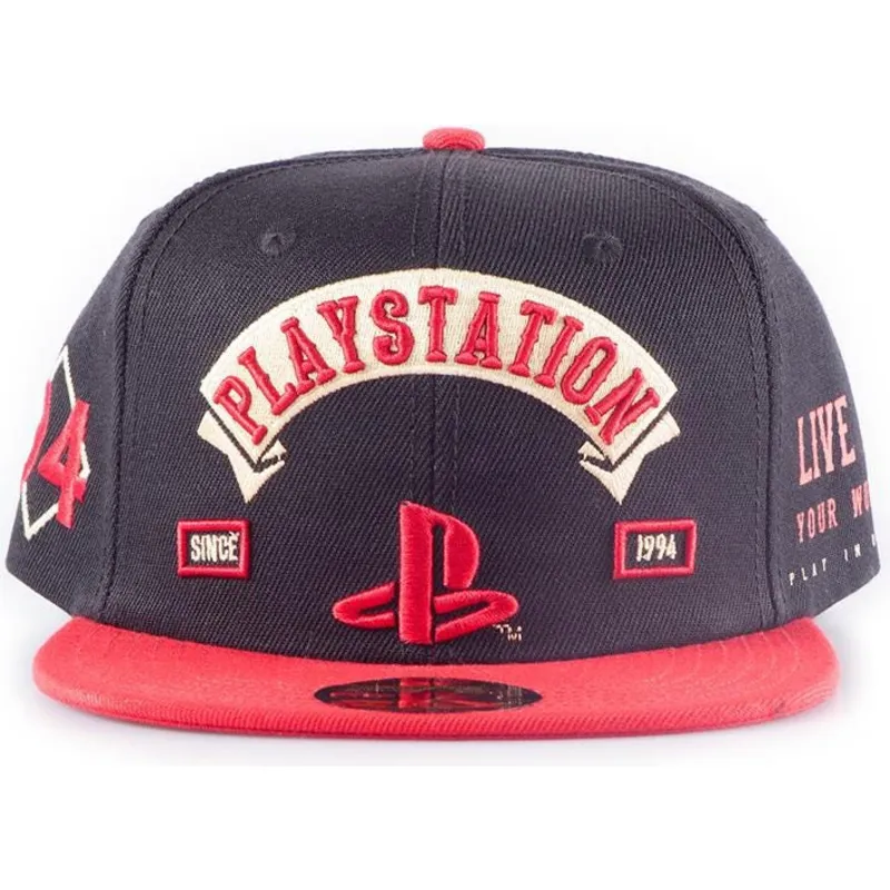 Czarna i czerwona czapka z daszkiem snapback PlayStation Sony od Difuzed