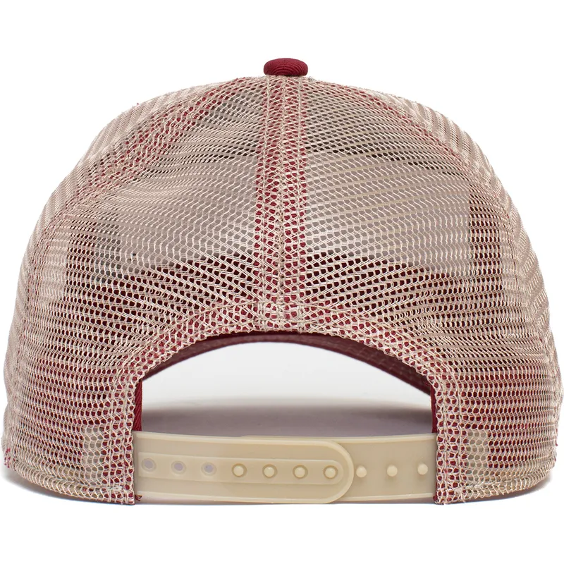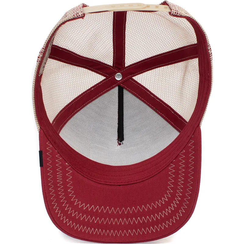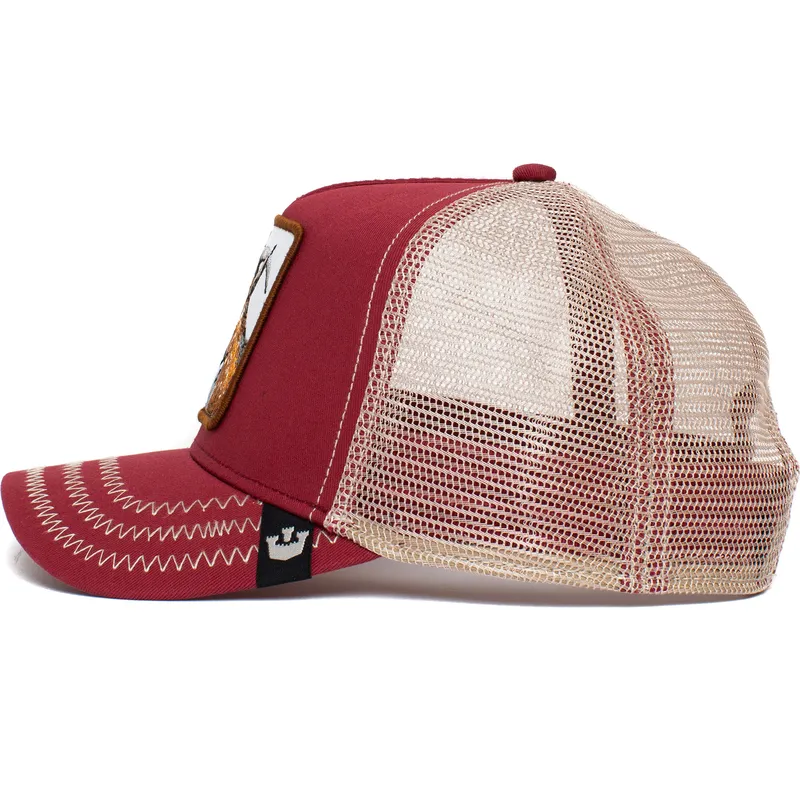 Czerwono-biała czapka typu truckerka Goorin Bros. G.O.A.T. The Goat The Farm to wyjątkowy model, który wyróżnia się unisexowym designem i wyrazistym stylem. Haftowana naszywka z motywem kozy z przodu dodaje jej wyjątkowego i oryginalnego charakteru. Ta czapka typu truckerka z zapięciem typu snapback jest idealna dla dorosłych poszukujących dodatku łączącego wygodę i styl.