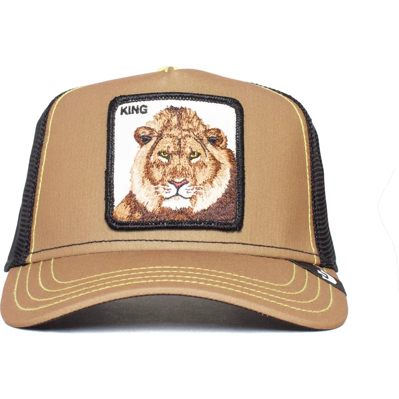 Brązowa czapka trucker z odblaskowym lwem King The Farm od Goorin Bros.