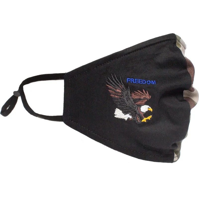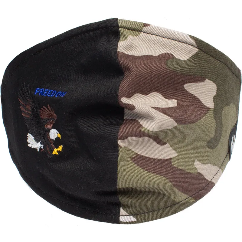 Czarna i kamuflażowa maseczka wielokrotnego użytku z orłem High Flyer od Goorin Bros.